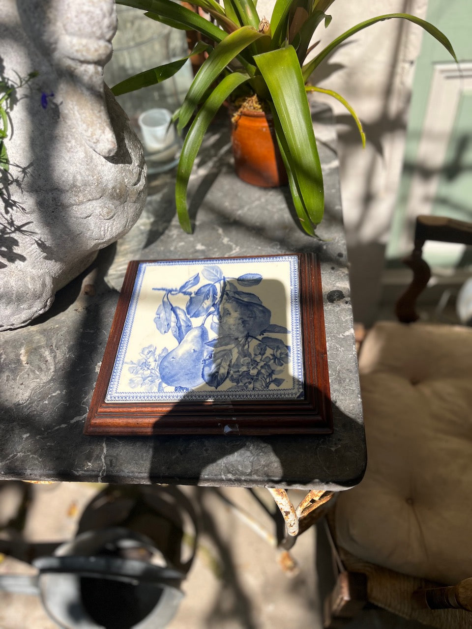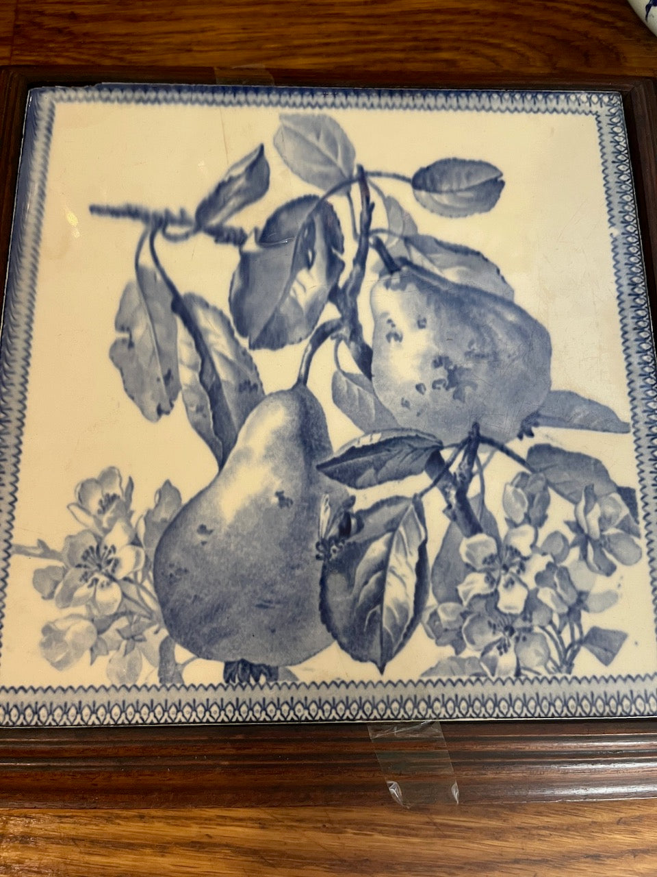 fa542 blue and white cheese platter /hot plate with wooden edge