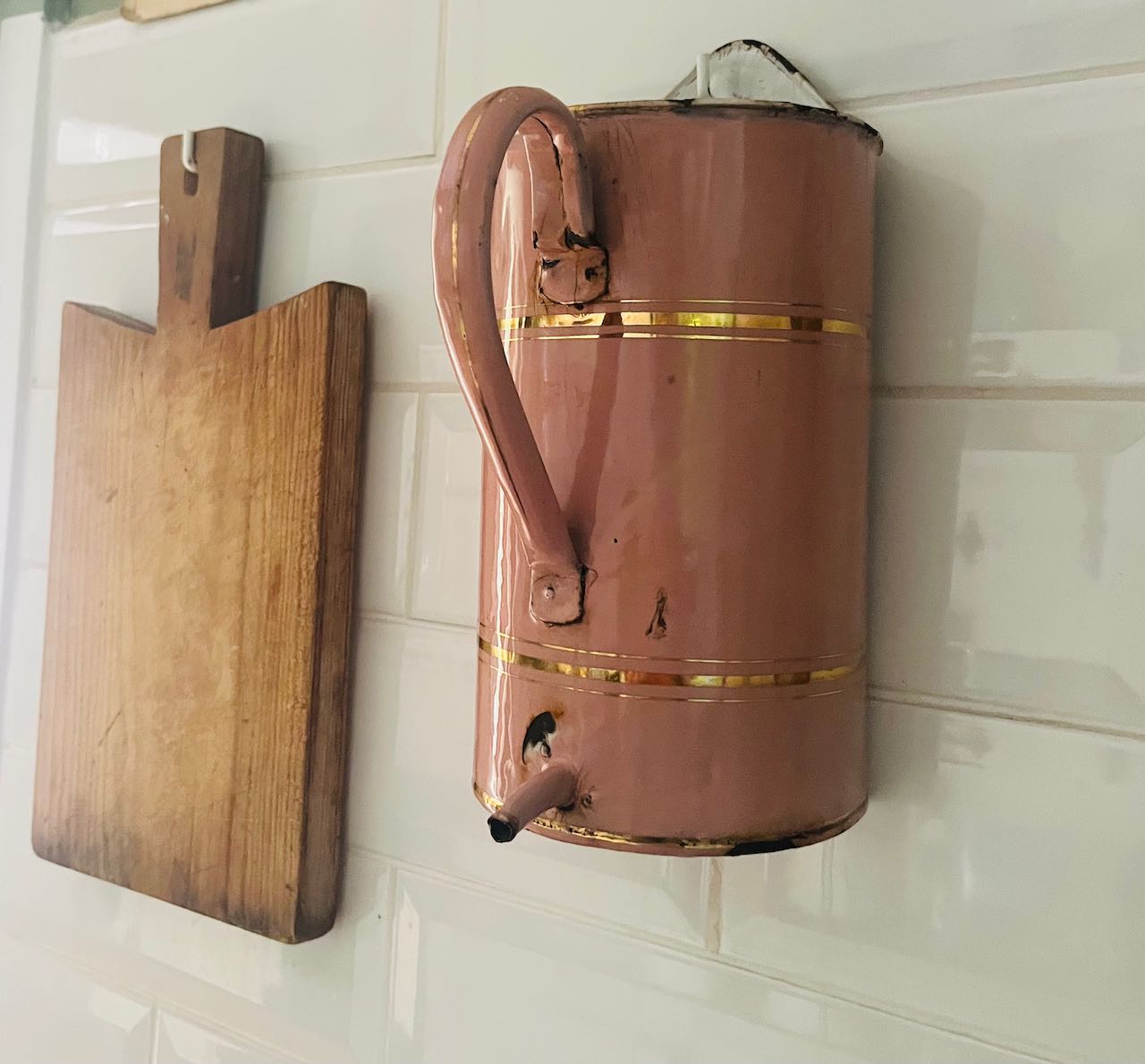 fa849 Pink and gold French wall planter, upcycled