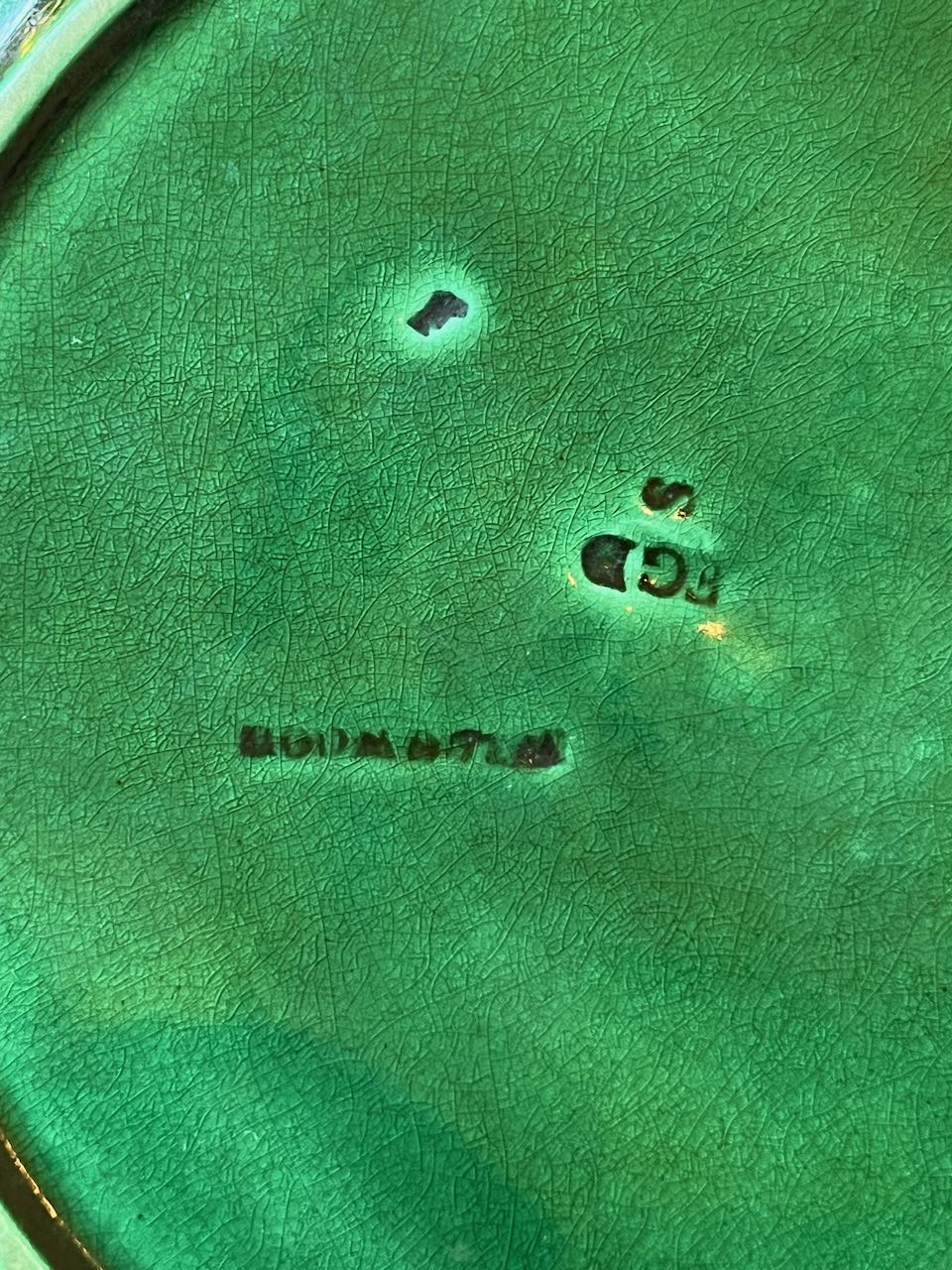 fa772 Green majolica English antique wedgewood sunflower plate