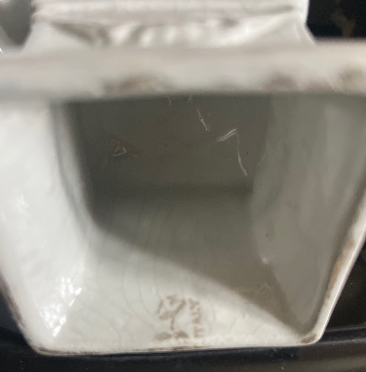 it has a few little pieces missing on the flowers but it is a beautiful unique piece 18cm high