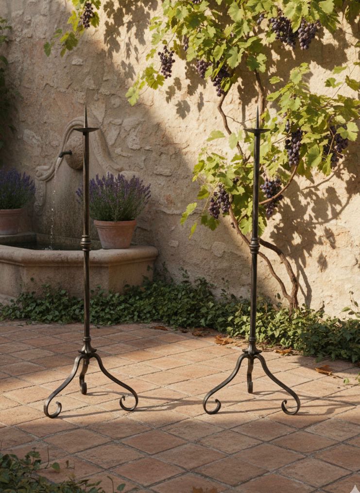 fa996 pair, Forged metal Candle holders, vintage